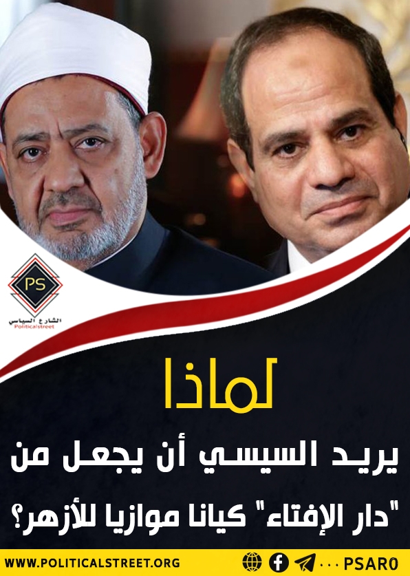 مشروع القانون الجديد الخاص بدار الإفتاء يمثل استهدافا للأزهر كمؤسسة ورسالة ومشيخة، والهدف من التعديلات هو”إنشاء كيان موازٍ للأزهر، وتفريغ دور الأزهر وتهميشه لصالح كيان دار الإفتاء الذي سيكون تحت أمر السلطة التنفيذية”، كما أن المستهدف أيضا هو شيخ الأزهر الدكتور أحمد الطيب، الذي يرى السيسي أنه تسبب في كثير من الإحراج للنظام وللسيسي شخصيا ويقف له في كثير من المواقف معريا قصور أفكاره وتصورته الشائهة حول الإسلام.