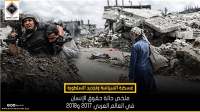 هكذا لخص تقرير شامل عن حالة حقوق الإنسان في العالم العربي 2017-2018، أصدره "مركز القاهرة لدراسات حقوق الانسان" في العالم العربي عامي 2017-2018، تحت عنوان "عسكرة السياسة وتجديد السلطوية".