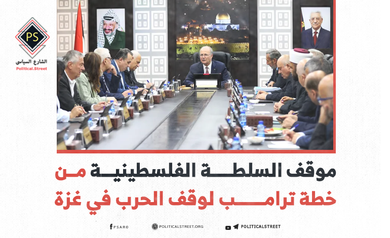في ردها علي خطة ترامب لوقف الحرب في غزة، قالت السلطة الفلسطينية في بيان رسمي :”ترحب دولة فلسطين بجهود الرئيس دونالد ترامب الصادقة والحثيثة لإنهاء الحرب على غزة، وتؤكد ثقتها بقدرته على إيجاد طريق نحو السلام. كما تشدد على أهمية الشراكة مع الولايات المتحدة في تحقيق السلام في المنطقة”. وأضاف البيان أن السلطة “تجدد التزامها المشترك بالعمل مع الولايات المتحدة ودول المنطقة والشركاء لإنهاء الحرب على غزة من خلال اتفاق شامل يضمن إيصال المساعدات الإنسانية الكافية إلى غزة، والإفراج عن الرهائن والأسرى، وإرساء آليات تحمي الشعب الفلسطيني وتكفل احترام وقف إطلاق النار والأمن للطرفين، وتمنع ضم الأرض، وتهجير الفلسطينيين، وتوقف الأعمال الأحادية التي تنتهك القانون الدولي، وتفرج عن أموال الضرائب الفلسطينية، وتقود إلى انسحاب إسرائيلي كامل، وتوحيد الأرض والمؤسسات الفلسطينية، في قطاع غزة والضفة الغربية بما فيها القدس الشرقية، وتنهي الاحتلال وتفتح الطريق أمام سلام عادل على أساس حل الدولتين، دولة فلسطين المستقلة وذات السيادة تعيش جنبًا إلى جنب مع دولة إسرائيل في أمن وسلام وحسن جوار، وفق الشرعية الدولية”. وأكد البيان على “الالتزامات التي قطعتها دولة فلسطين أمام المؤتمر الدولي في نيويورك حول استكمال برنامج الإصلاحات الفلسطينية بما يشمل الذهاب إلى الانتخابات الرئاسية والبرلمانية خلال عام واحد بعد انتهاء الحرب، والتزام جميع المرشحين للانتخابات بالبرنامج السياسي والالتزامات الدولية لمنظمة التحرير الفلسطينية، والشرعية الدولية، ومبدأ نظام واحد، وقانون واحد، وقوات أمن فلسطينية شرعية واحدة”. وشدد على أن السلطة الفلسطينية “تريد دولة فلسطينية ديموقراطية عصرية، غير مسلحة، تلتزم بالتعددية والتداول السلمي للسلطة”. وكذلك “الالتزام بتنفيذ برنامج تطوير المناهج الدراسية وفق معايير اليونسكو خلال عامين، وإلغاء القوانين واللوائح التي يتم بموجبها الدفع لعائلات الأسرى والشهداء وإنشاء نظام رعاية اجتماعية موحد، يخضع للتدقيق الدولي. وتؤكد دولة فلسطين استعدادها للانخراط الإيجابي والبناء مع الولايات المتحدة والأطراف كافة من أجل تحقيق السلام والأمن والاستقرار لشعوب المنطقة”1.